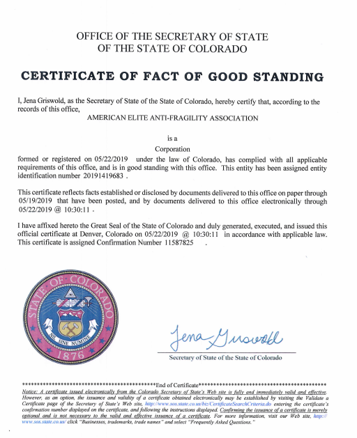 以下是吳女士美國科州公司的注冊證書: