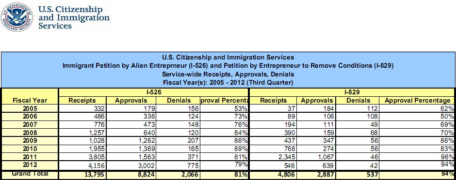 上圖: 2012年投資移民I-526和I-829的批準(zhǔn)率分別是81%和84%。