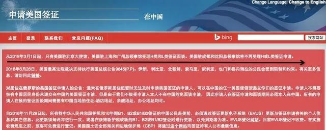 美國領事館最新通知:從2019年3月1日起,只有美國駐北京大使館、美國駐上海和廣州總領事館受理H類和L類簽證面談。美國駐成都和沈陽總領事館將不再受理H或L類簽證申請。
