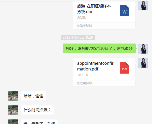 鷹飛國際簽單的時候,各個使館預約的時間都在5月20日左右,權衡再三選擇成都使館,一是因為可能后期會釋放一些名額,二是離湖南也近一些,方便客戶面簽。