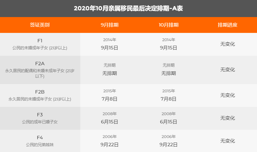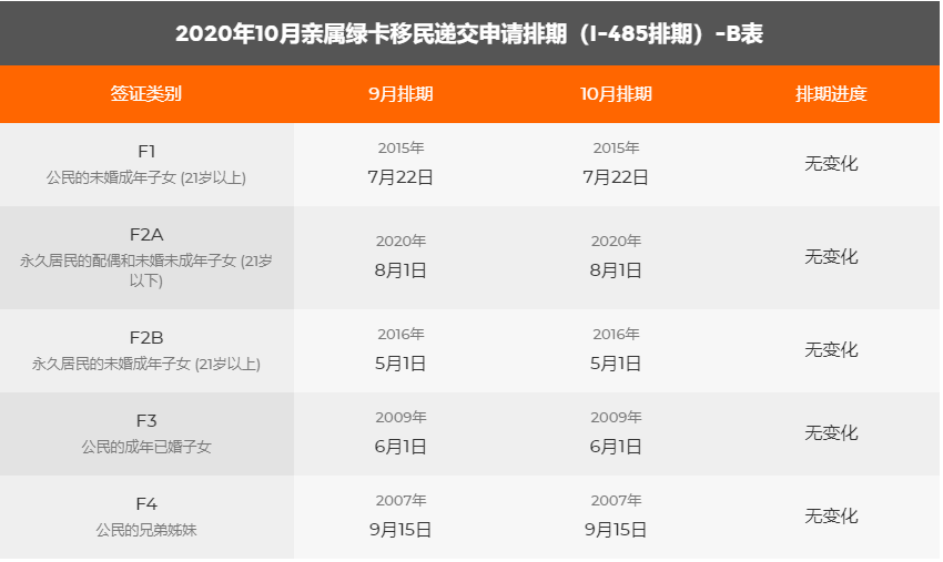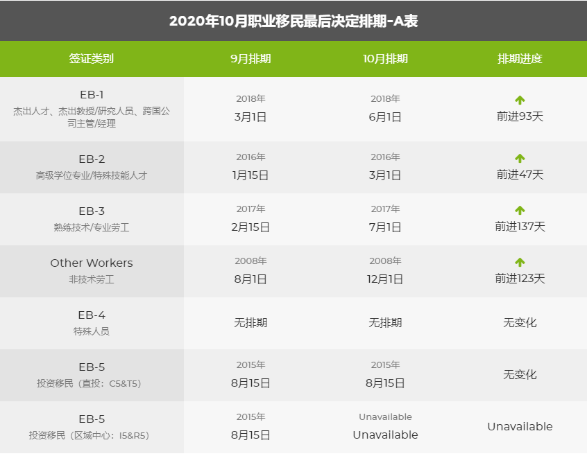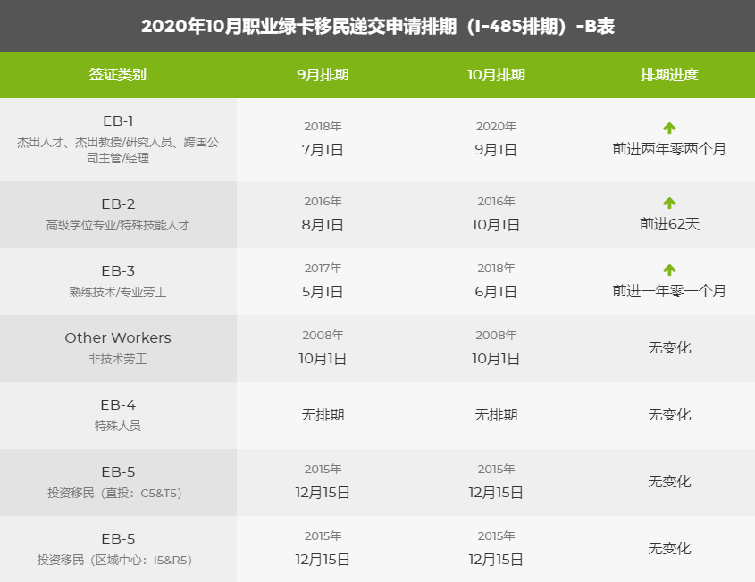 2020年10月綠卡移民排期公布,職業(yè)移民有大幅前進(jìn)!