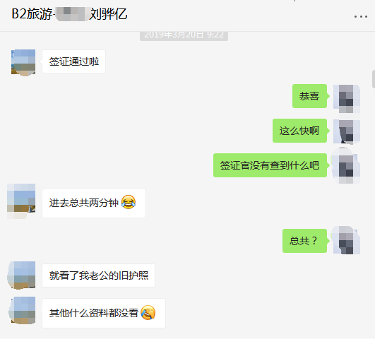在面簽前,鷹飛國際給趙先生和趙太太做了培訓指導,所以很大一部分降低了他們的緊張感。面簽時,趙先生和趙太太回答的也比較流利,進去不到2分鐘,就通過了面簽。